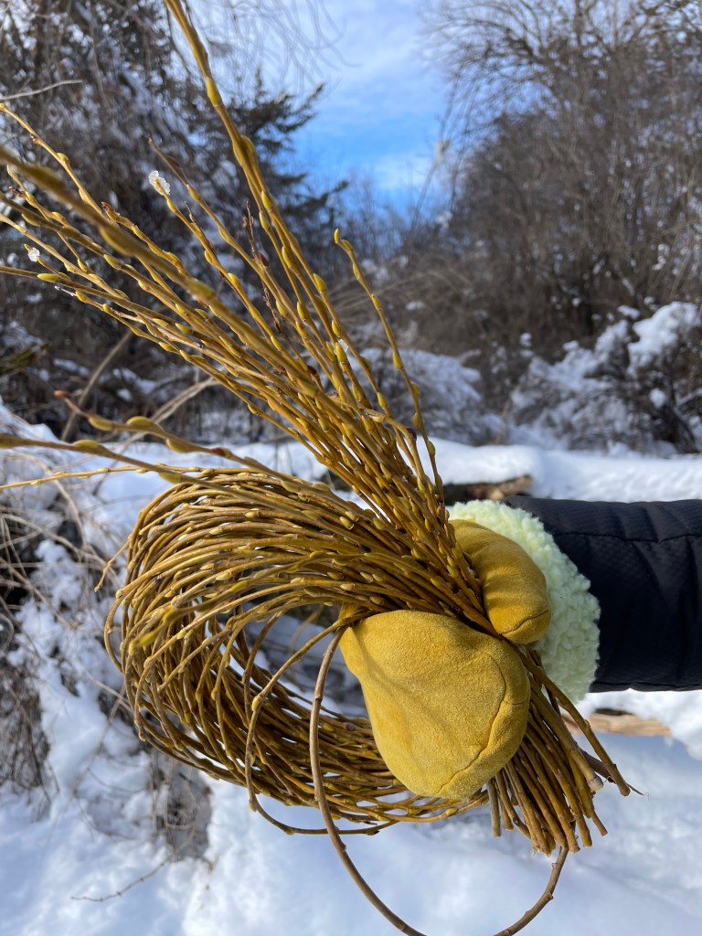 Willow branches are spry and prime for the picking now just before they go into full bud. Some recent heavy snowfall has weighed down some weaker branches, sending them to the ground, rendering them better suited to be stowed away as a future pain remedy.