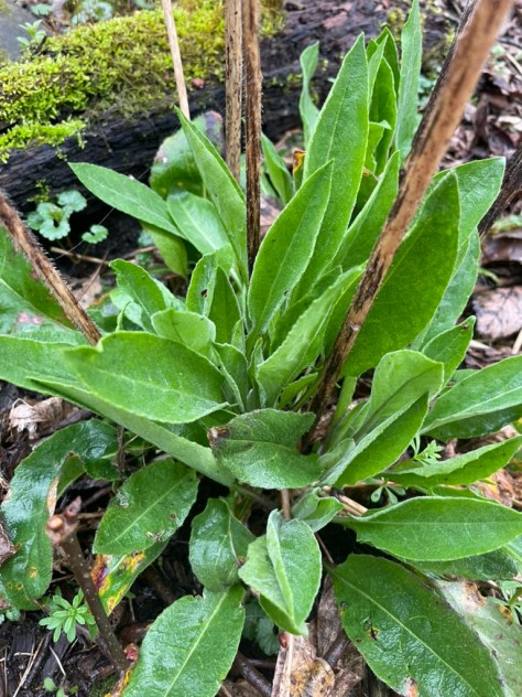 One of the earliest to peek through melting snow, sometimes even persisting through the winter, is the rosette of the dame’s rocket. Photographed here in early April, the leaves have a slightly serrated edge, mildly hairy leaves, but extremely tender making an ideal spring green.