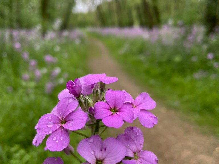 Later in the spring, the dame’s rockets will become fragrant and full of 4-petaled blossoms ranging from purples, pinks and whites. The petals are also edible and make excellent additions to salads or other dishes as decorative garnishes.