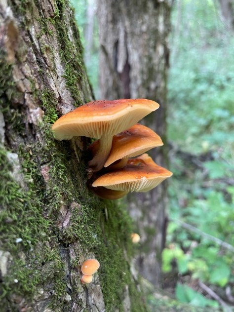 Also called “wild enoki”, here it is revealing its long steps when under light-anemic conditions, shows its resemblance to the cultivated version known as enoki, but in the wild it will have brown caps instead of the albino appearance of the long spindly ones found in stores.